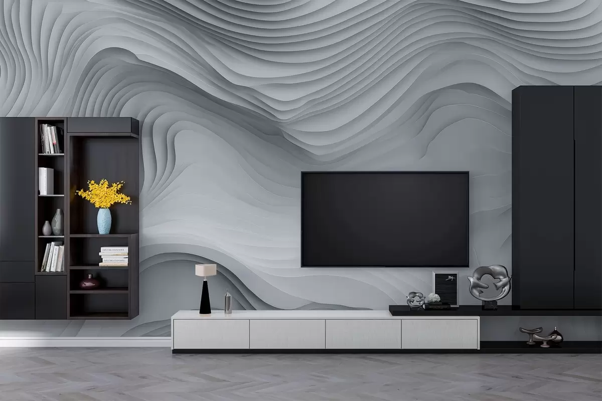 Fotobehang imitatie van volumineuze getrapte reliëfs in grijstinten N° w05061