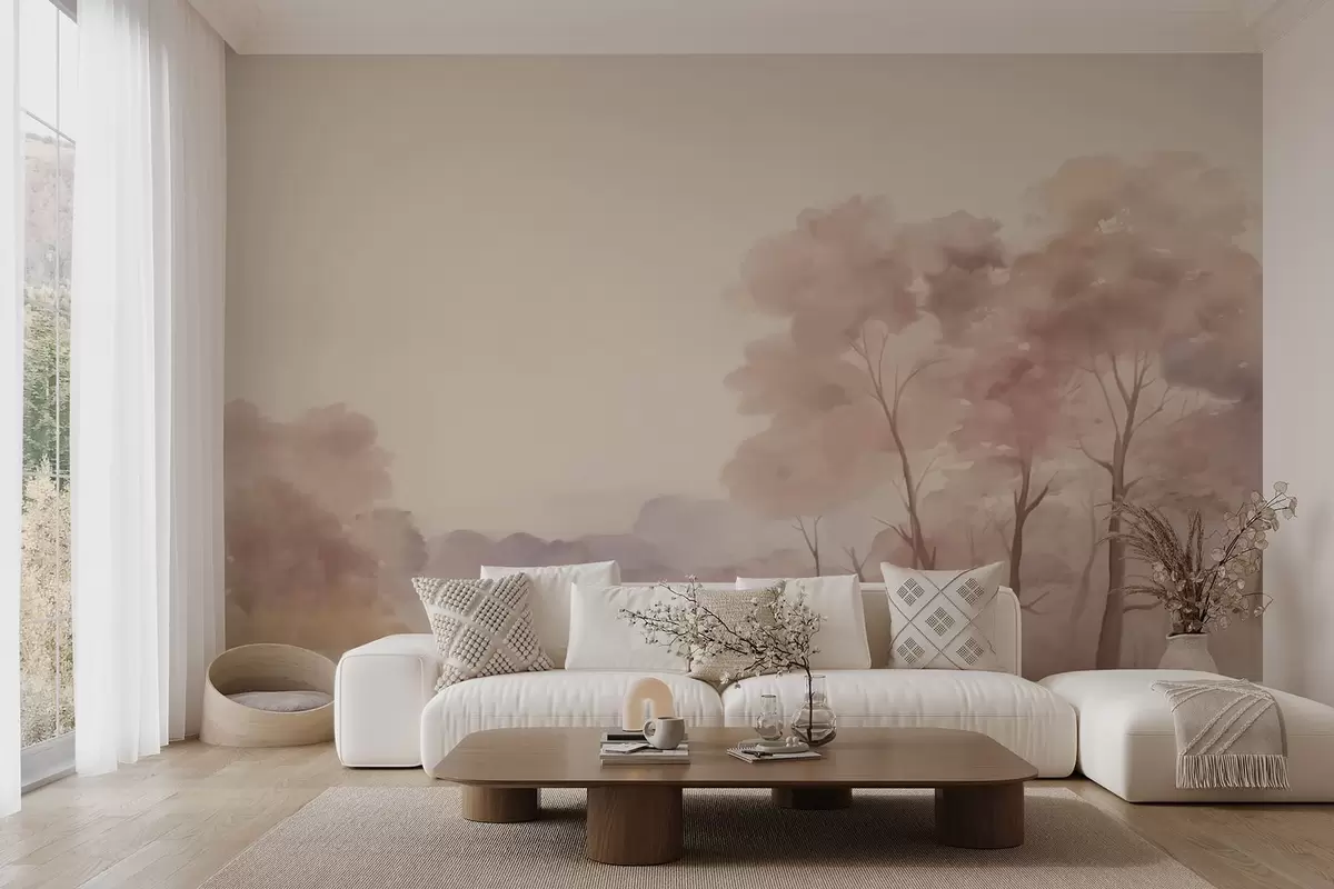 Fotobehang Delicaat landschap met bomen N° w05075