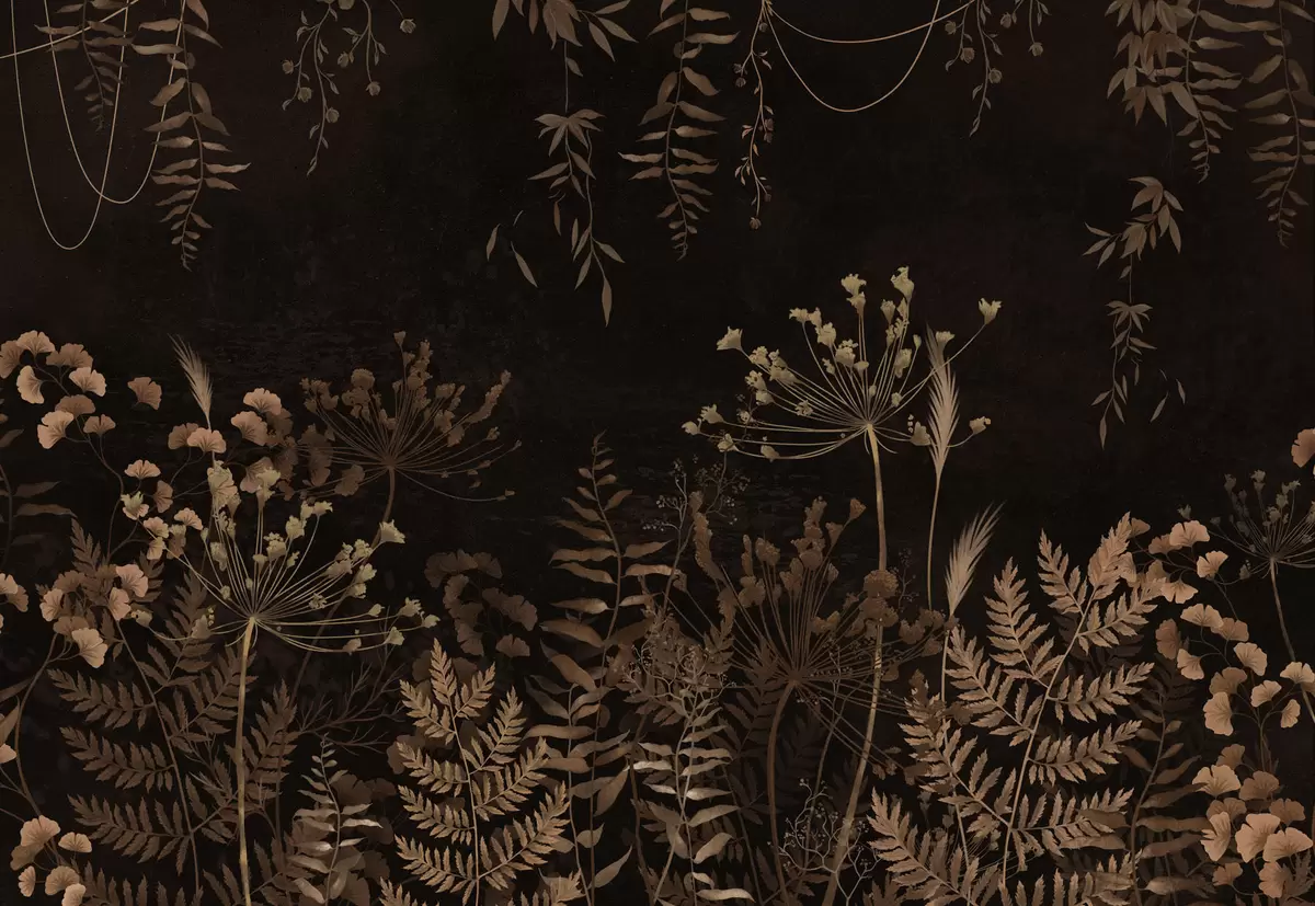 Fotobehang Donker botanisch patroon met bloemen en grassen N° w05092v3