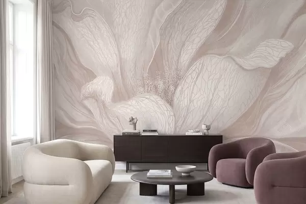 Fotobehang Abstracte bloem in lichtbeige tinten N° w05119