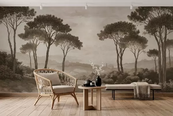 Fotobehang Landschap met bomen in vintage sepia-tinten N° w05122v2