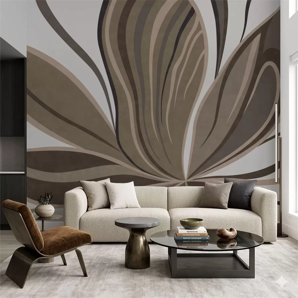 Fotobehang Gestileerde bloem met vloeiende lijnen in bruintinten N° w05147