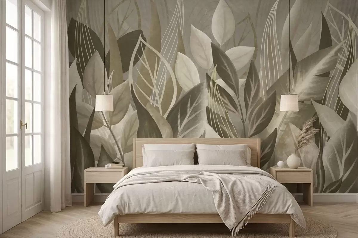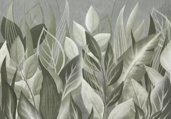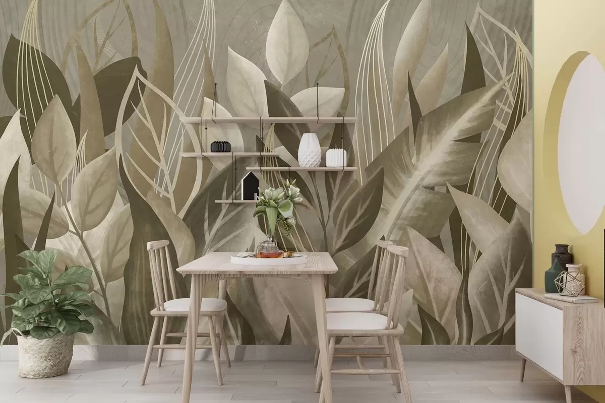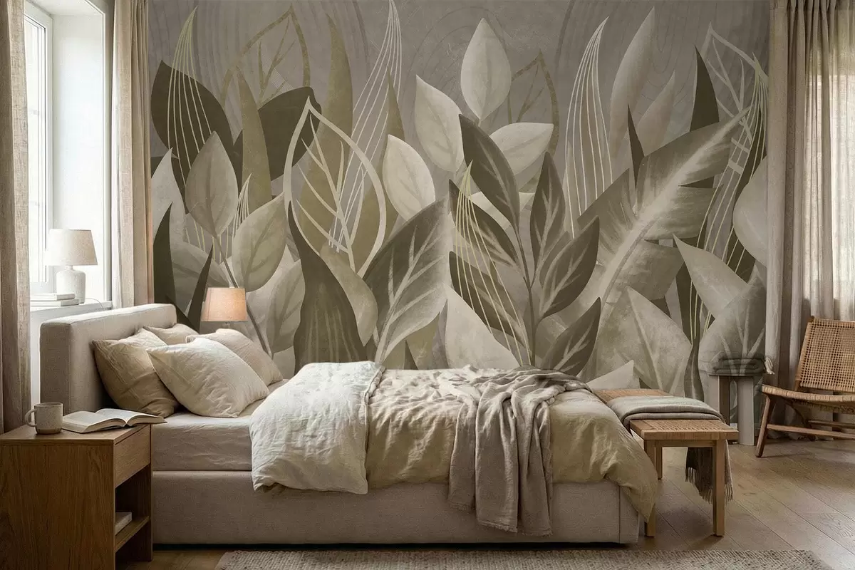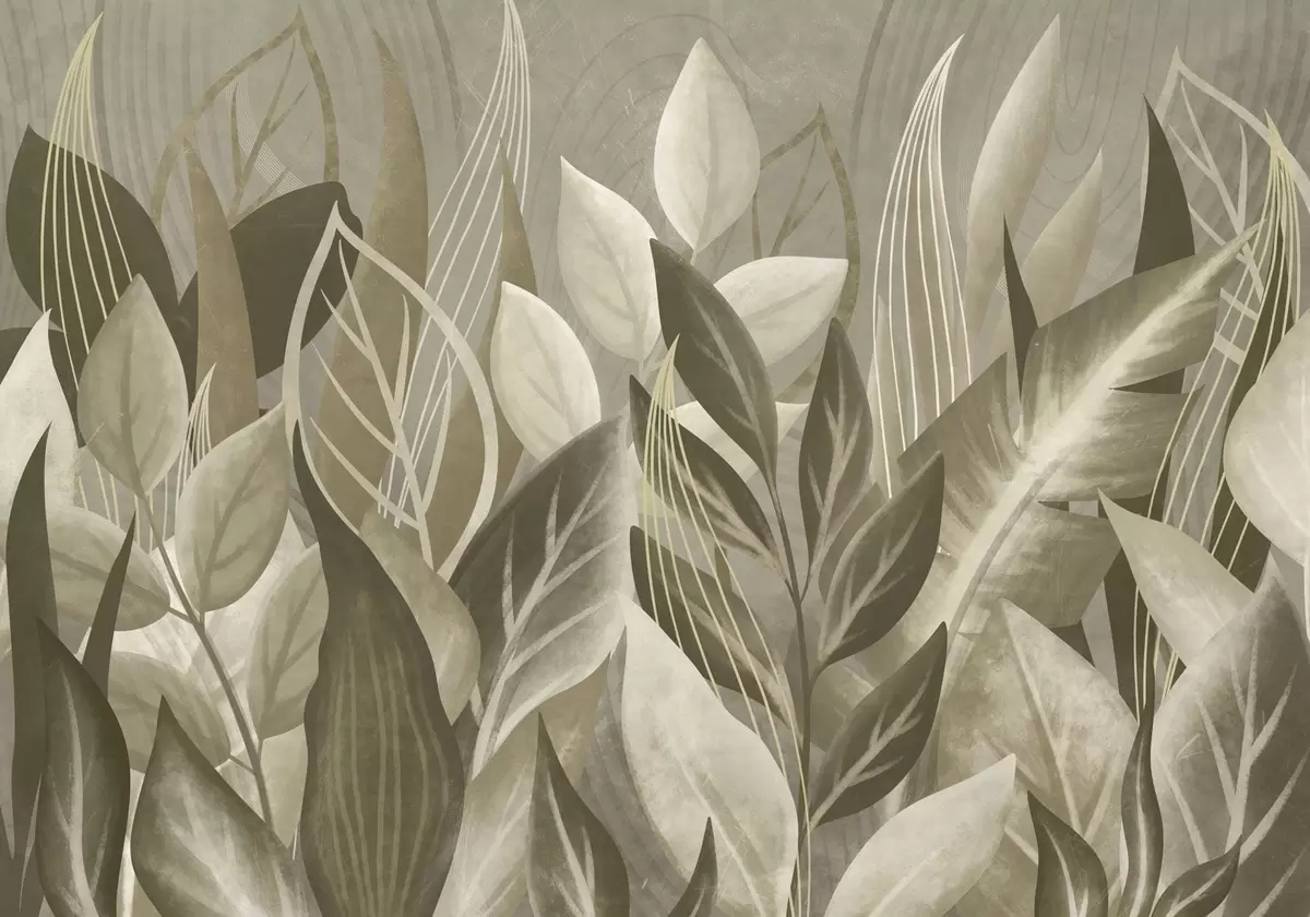 Fotobehang Abstracte bladeren in beige en groene tinten N° w05148