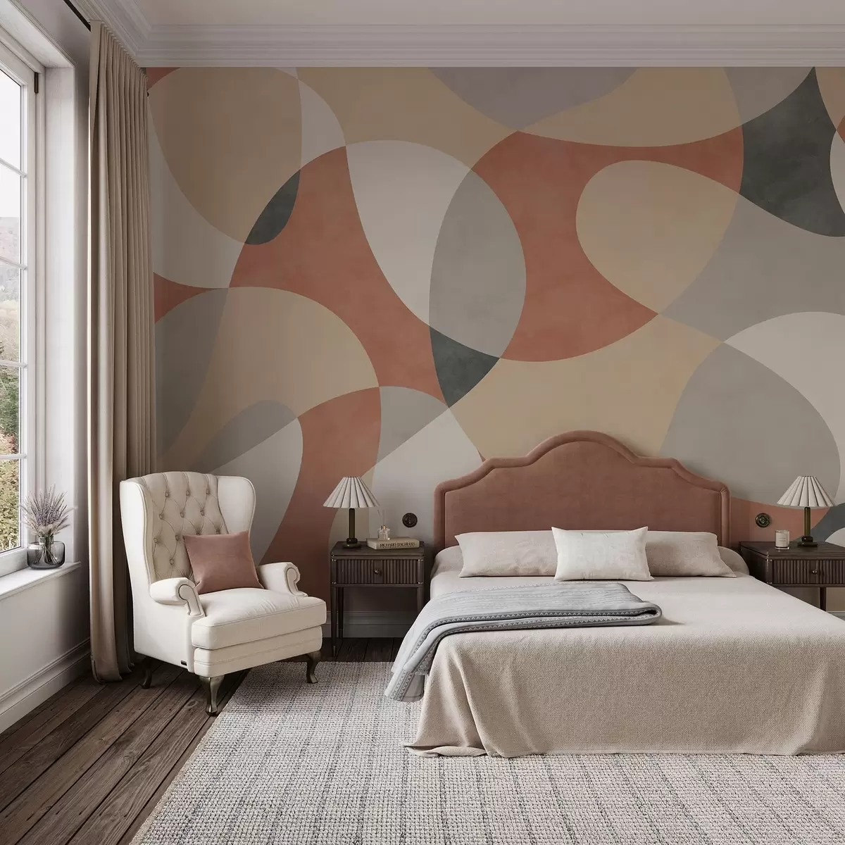 Fotobehang Abstract patroon met afgeronde vormen in warme tinten N° w05149v1