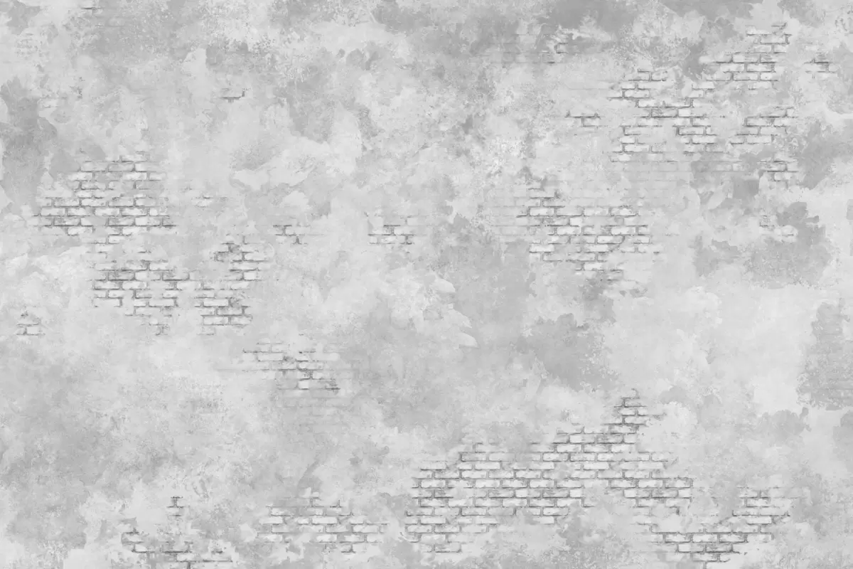 Fotobehang Grungegrijs pleisterwerk met stukken zichtbare baksteen N° w05161v2