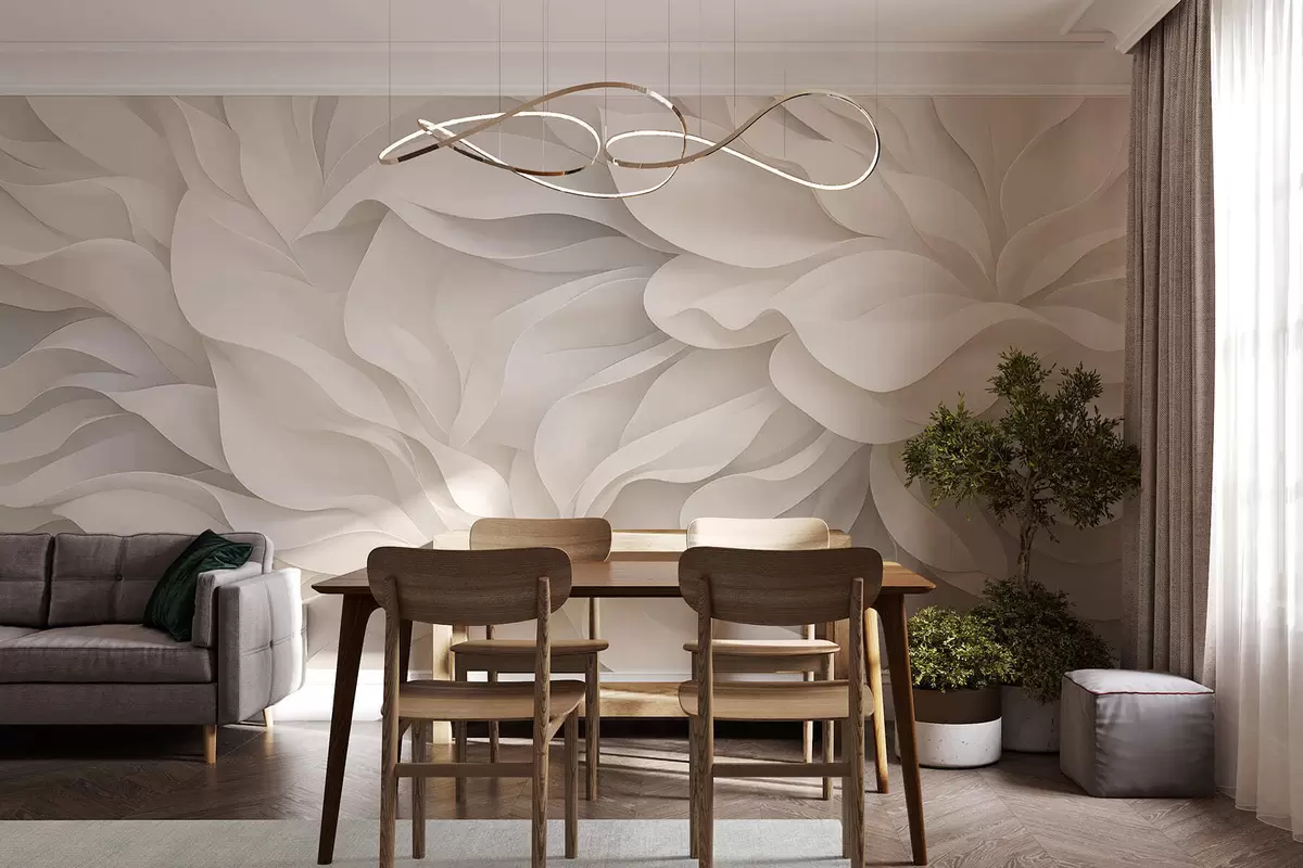 Het resultaat is dat je je behangpapier al in rollen gesneden ontvangt, netjes verpakt voor levering.