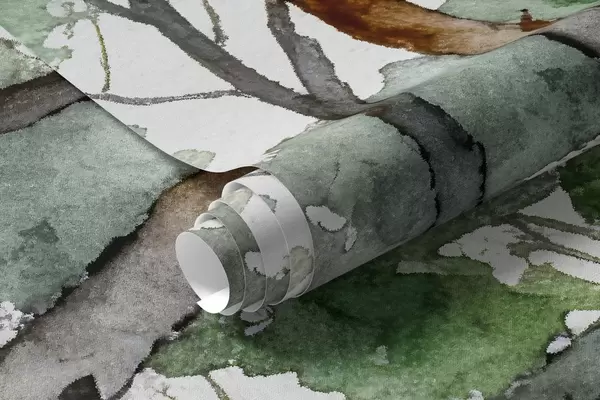 Het resultaat is dat je je behangpapier al in rollen gesneden ontvangt, netjes verpakt voor levering.