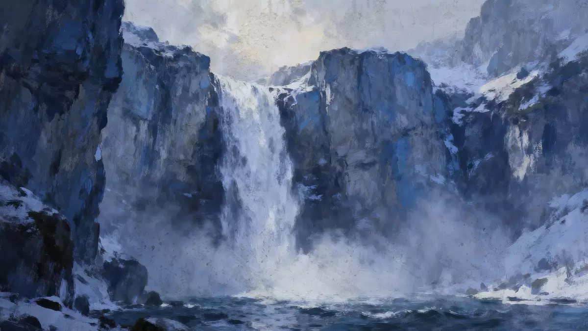 Fotobehang Grunge-stijl geschilderde waterval N° w05177