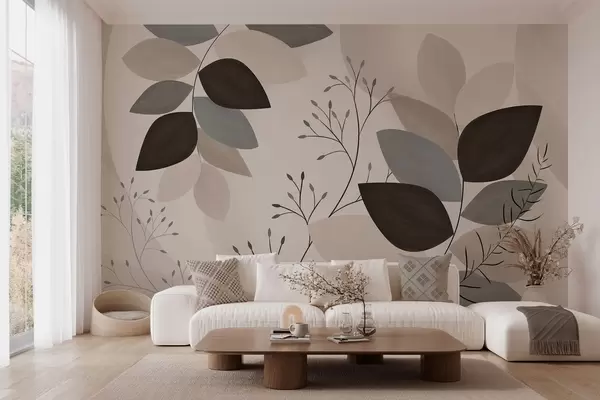 Fotobehang bladeren en grassen in beige, grijze en bruine tinten N° w05237