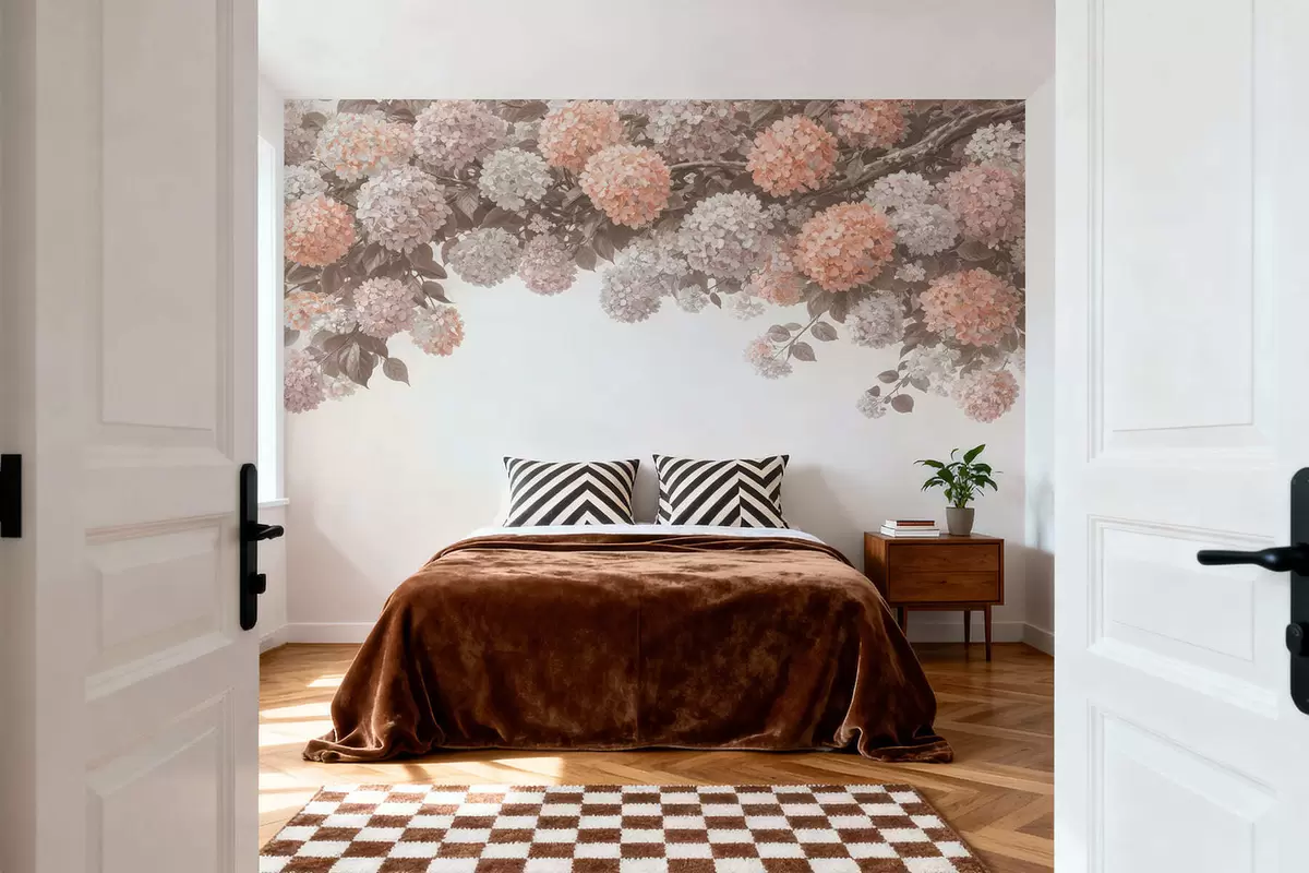 Fotobehang Geschilderde hortensia's hangen naar beneden N° w05250v1