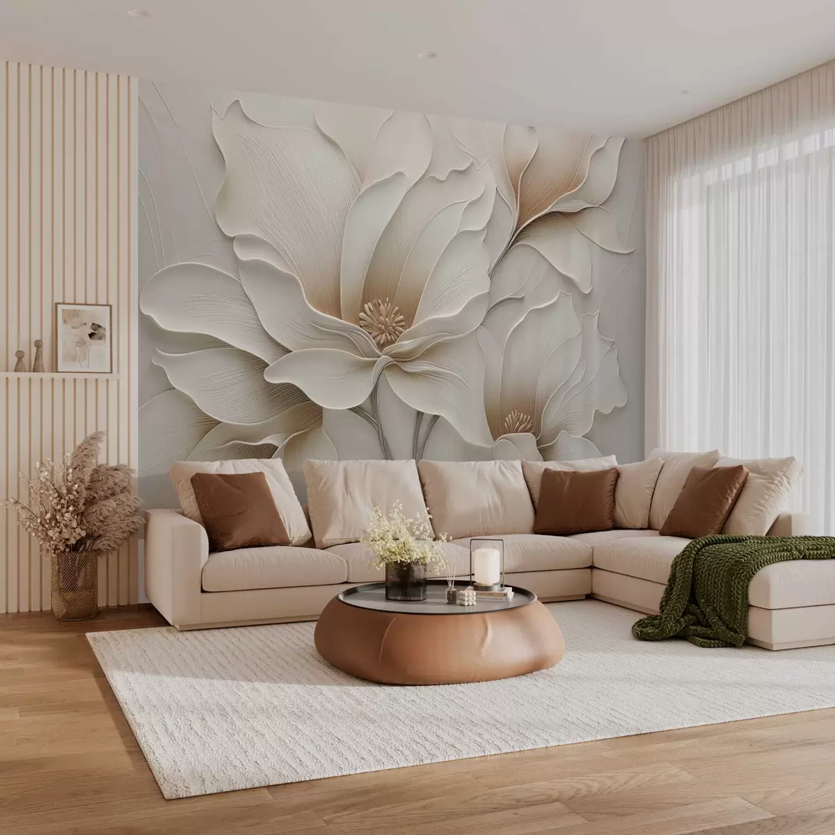 Fotobehang Close-up van beige bloemreliëf in reliëf N° w05269