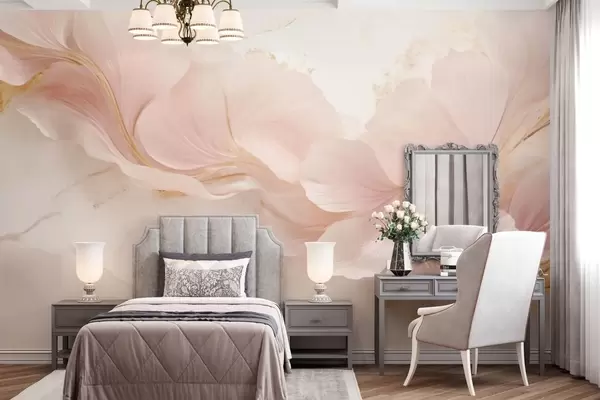 Fotobehang Zachtroze bloemen op een lichte achtergrond N° w05357