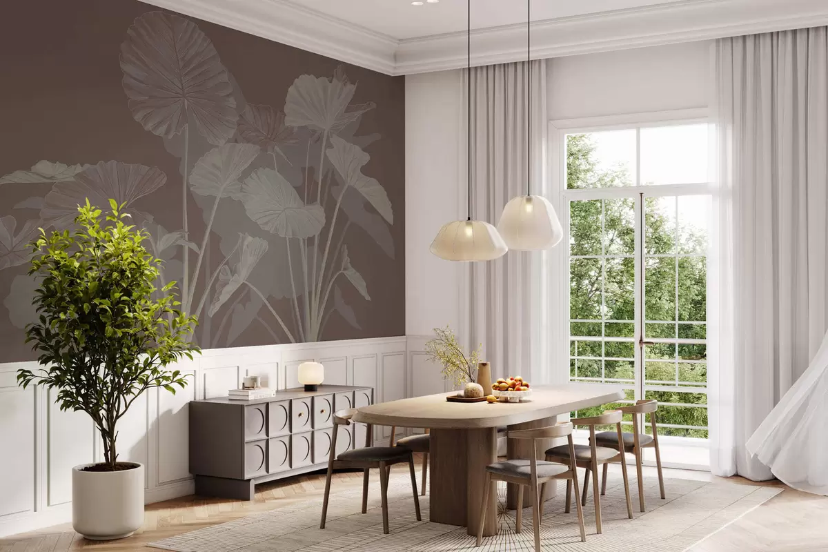 Fotobehang Tuin met geschilderde lotussen N° w05364v2