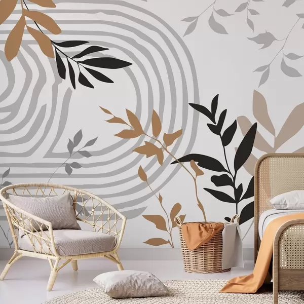 Fotobehang Abstracte plantensilhouetten en lijnen N° w05374