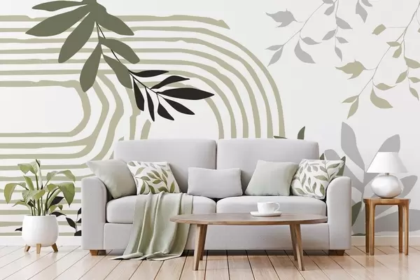 Fotobehang Abstracte plantensilhouetten en lijnen N° w05374v1