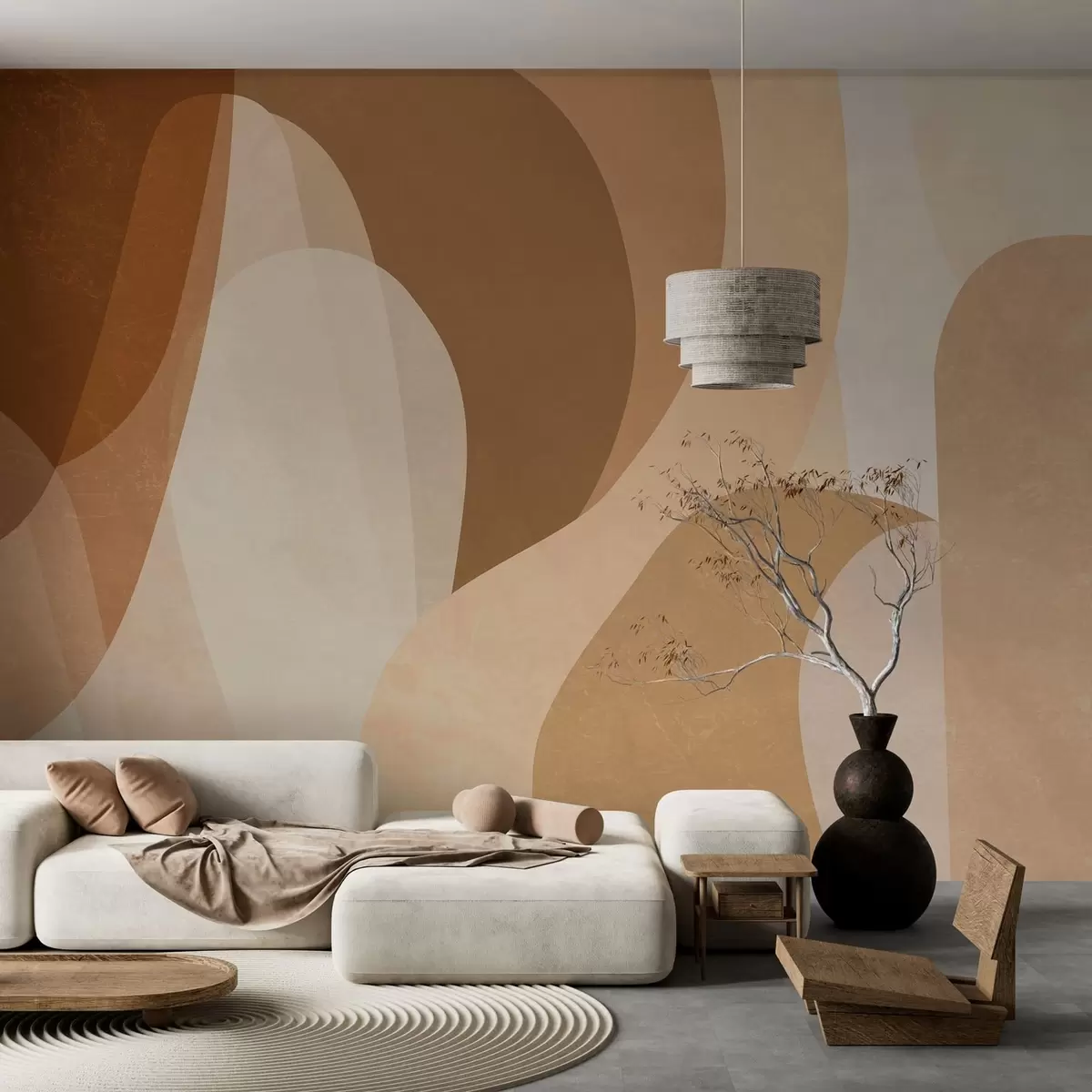 Fotobehang abstracte rondingen in bruine, beige en kastanjebruine tinten N° w05387