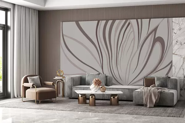 Fotobehang Gestileerde bloem met zachte lijnen in roze-beige tinten N° w05392v1