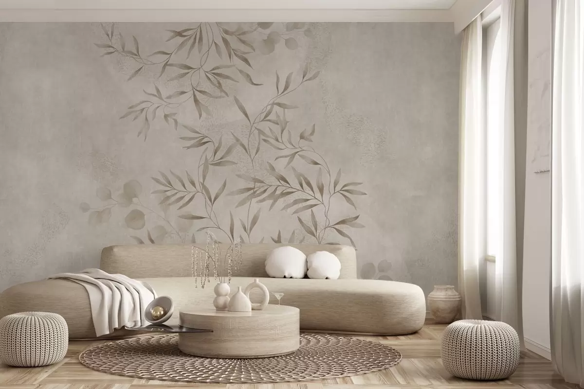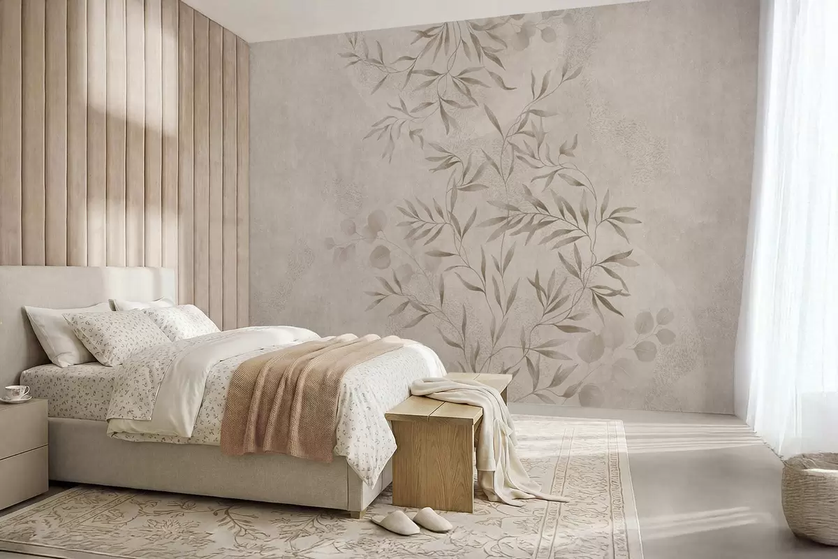 Fotobehang Botanisch patroon in beige en bruine tinten N° w05424v2