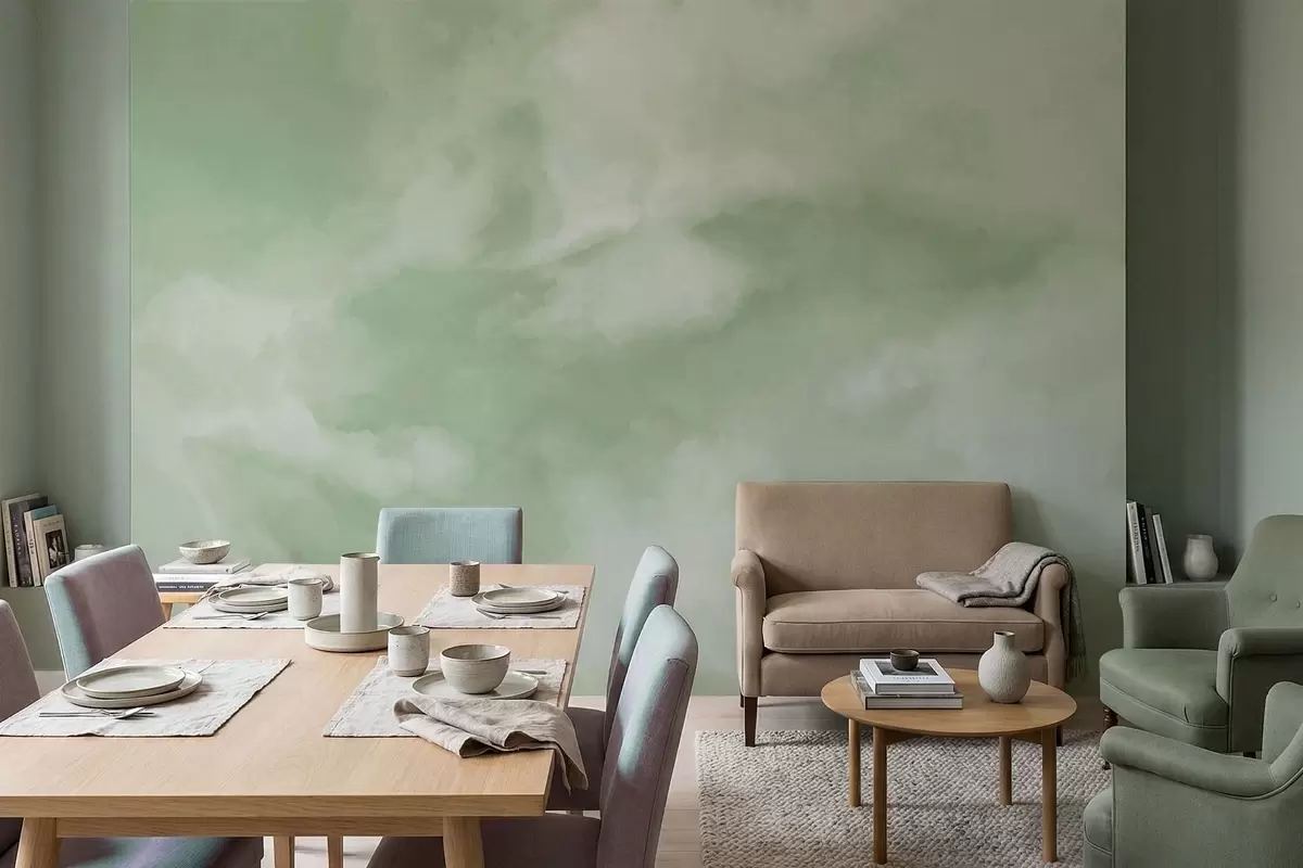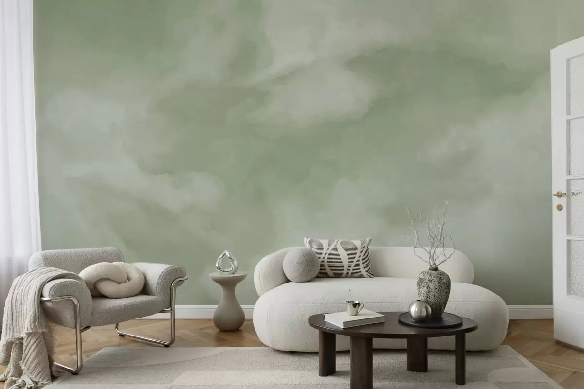 Fotobehang Zachte, bewolkte achtergrond in zachte groene tinten N° w05426v2