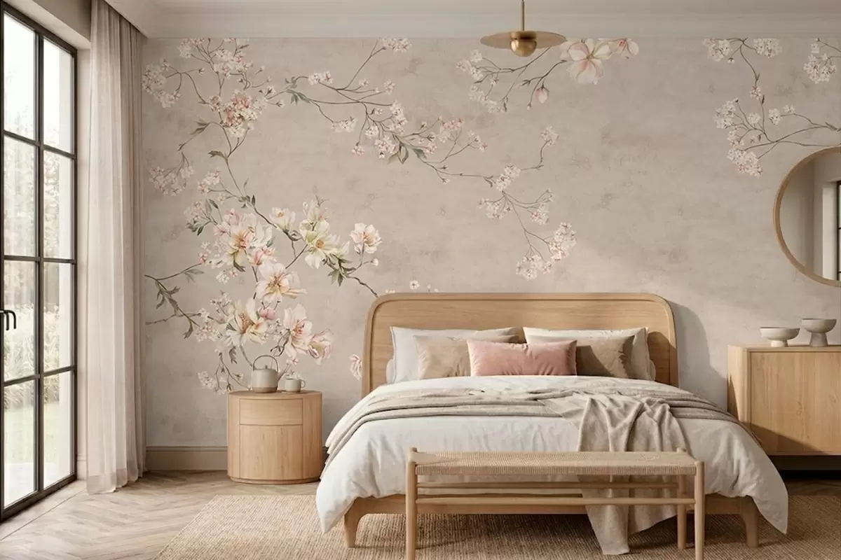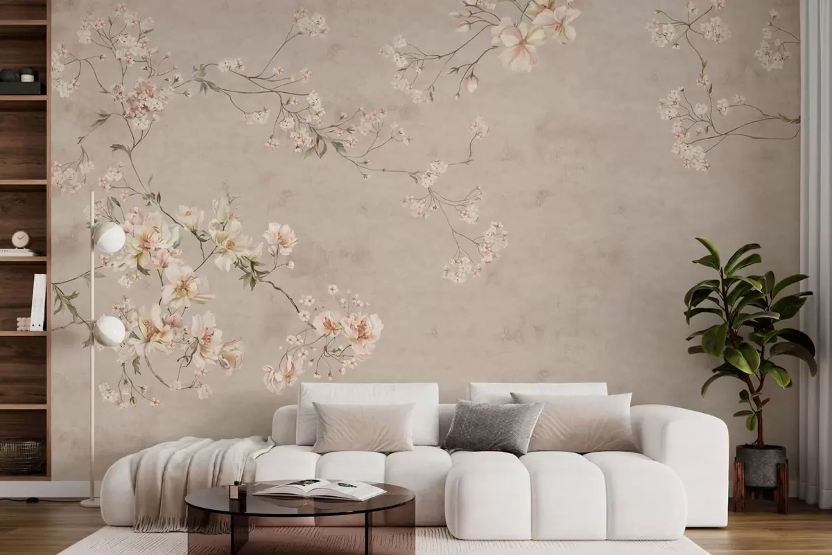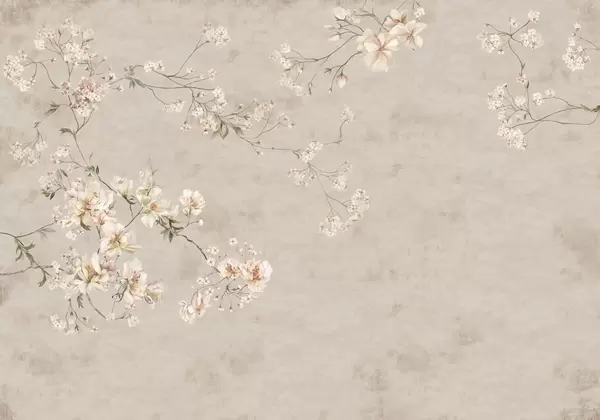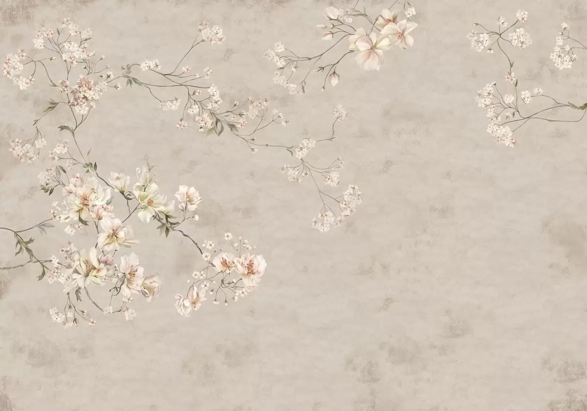 Fotobehang Chinoiserie: delicate bloemtakken op een lichte achtergrond N° w05427