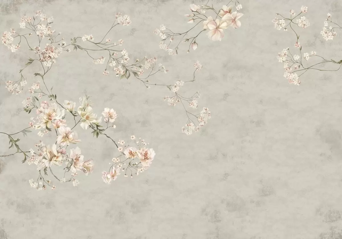 Fotobehang Bloemtakken in chinoiserie-stijl op een grijze achtergrond N° w05427v1