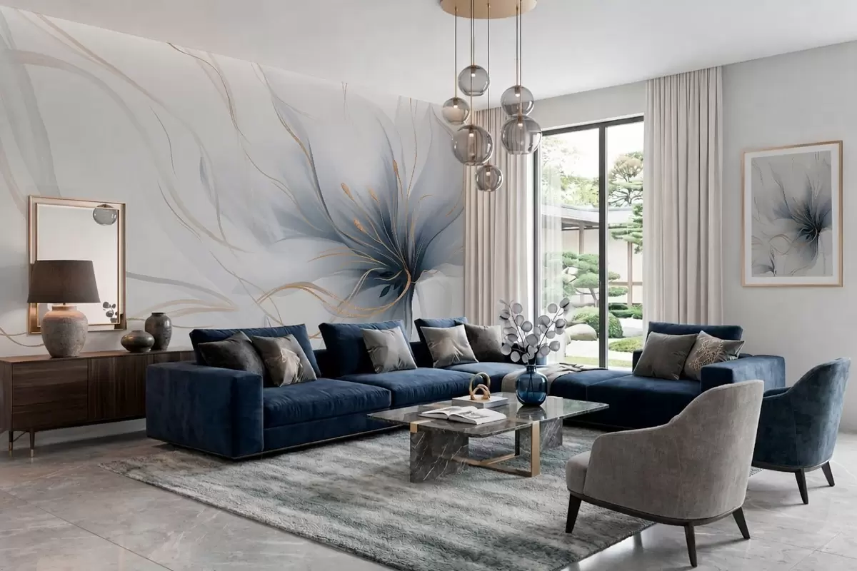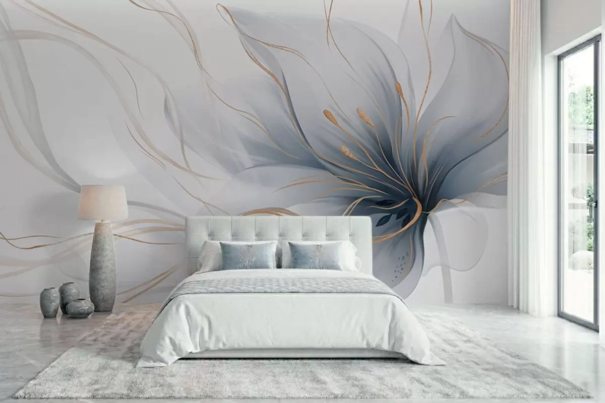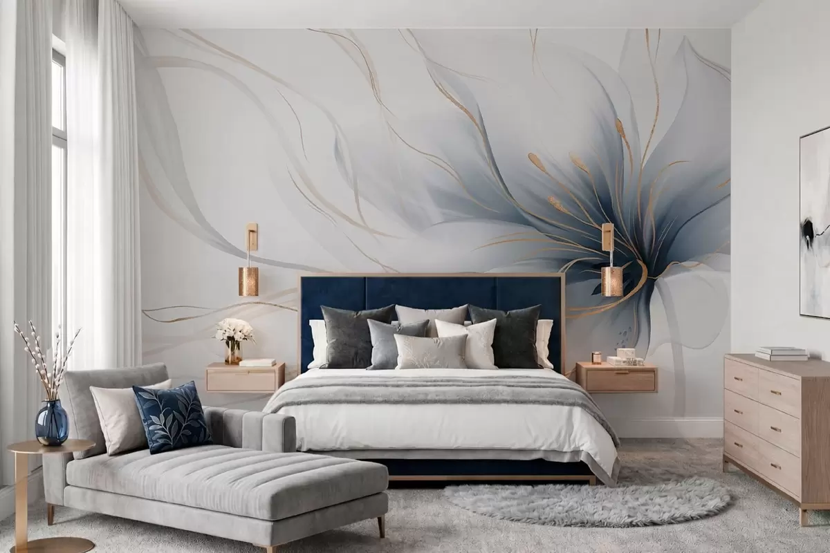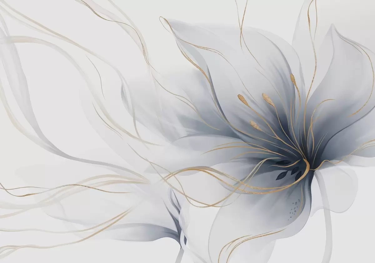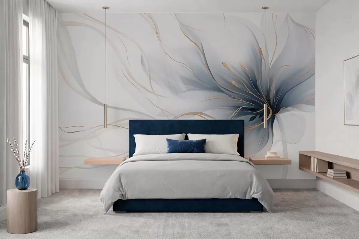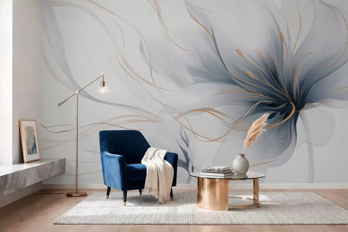 Fotobehang Een abstracte blauwe bloem met vloeiende lijnen in de Fluid Art-stijl N° w05428
