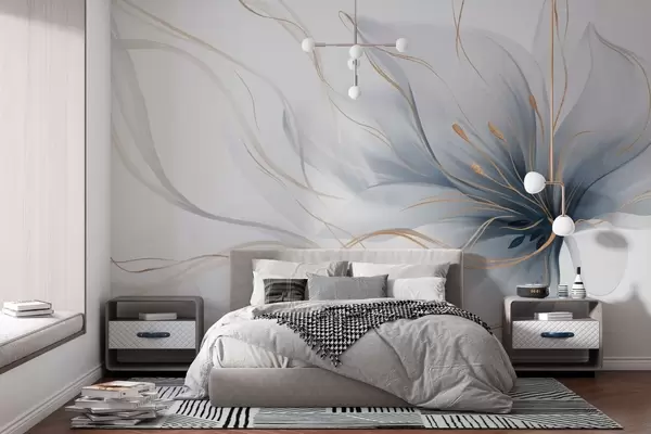 Fotobehang Een abstracte blauwe bloem met vloeiende lijnen in de Fluid Art-stijl N° w05428