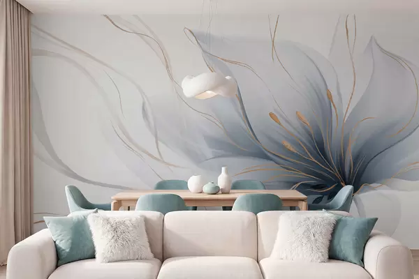 Fotobehang Een abstracte blauwe bloem met vloeiende lijnen in de Fluid Art-stijl N° w05428