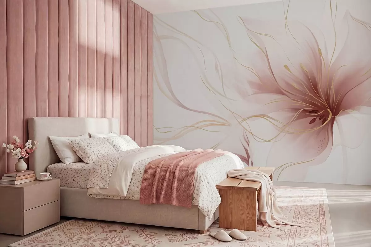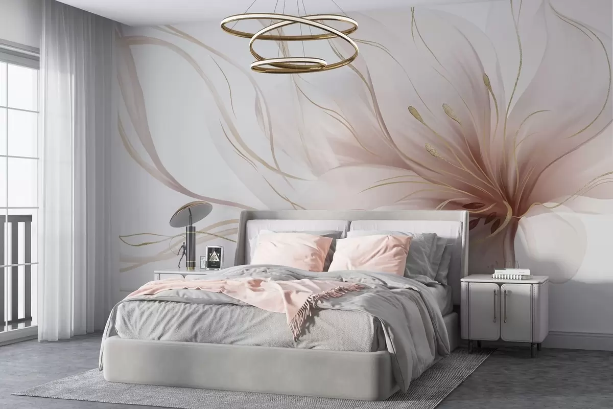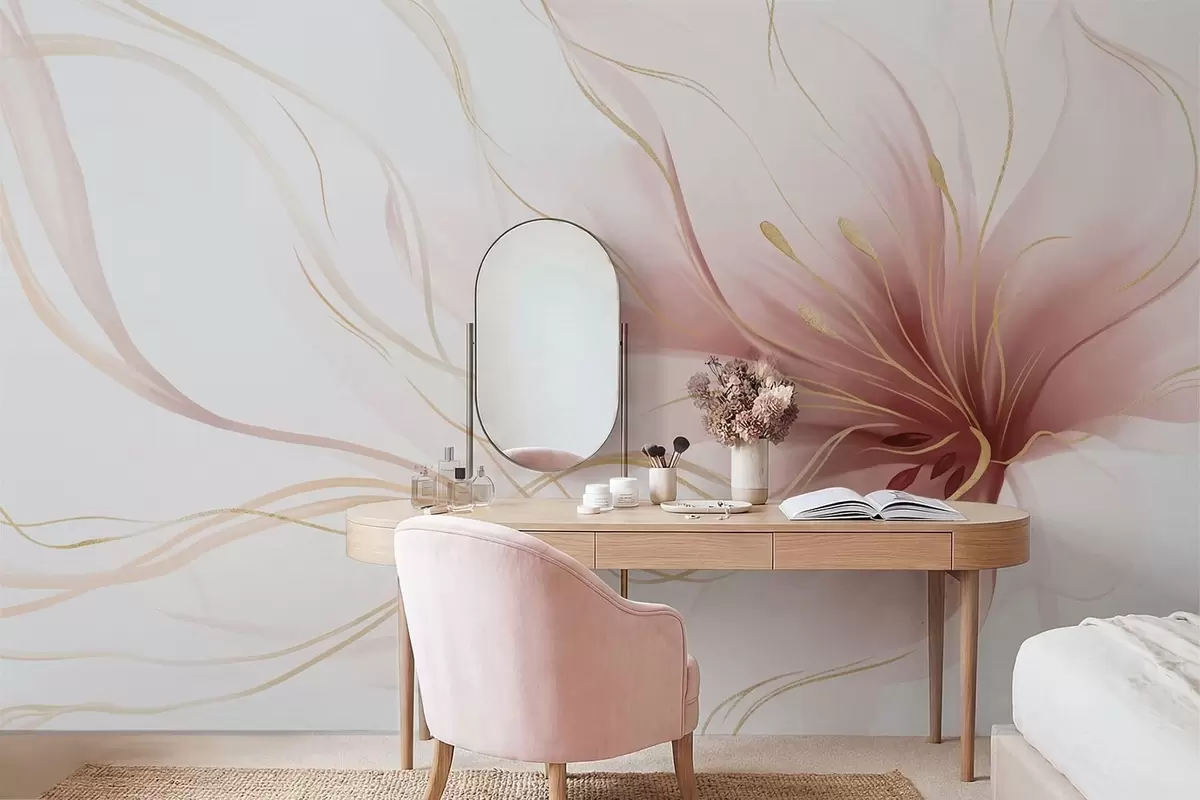 Fotobehang Een abstracte roze bloem met vloeiende lijnen in de Fluid Art-stijl N° w05428v1