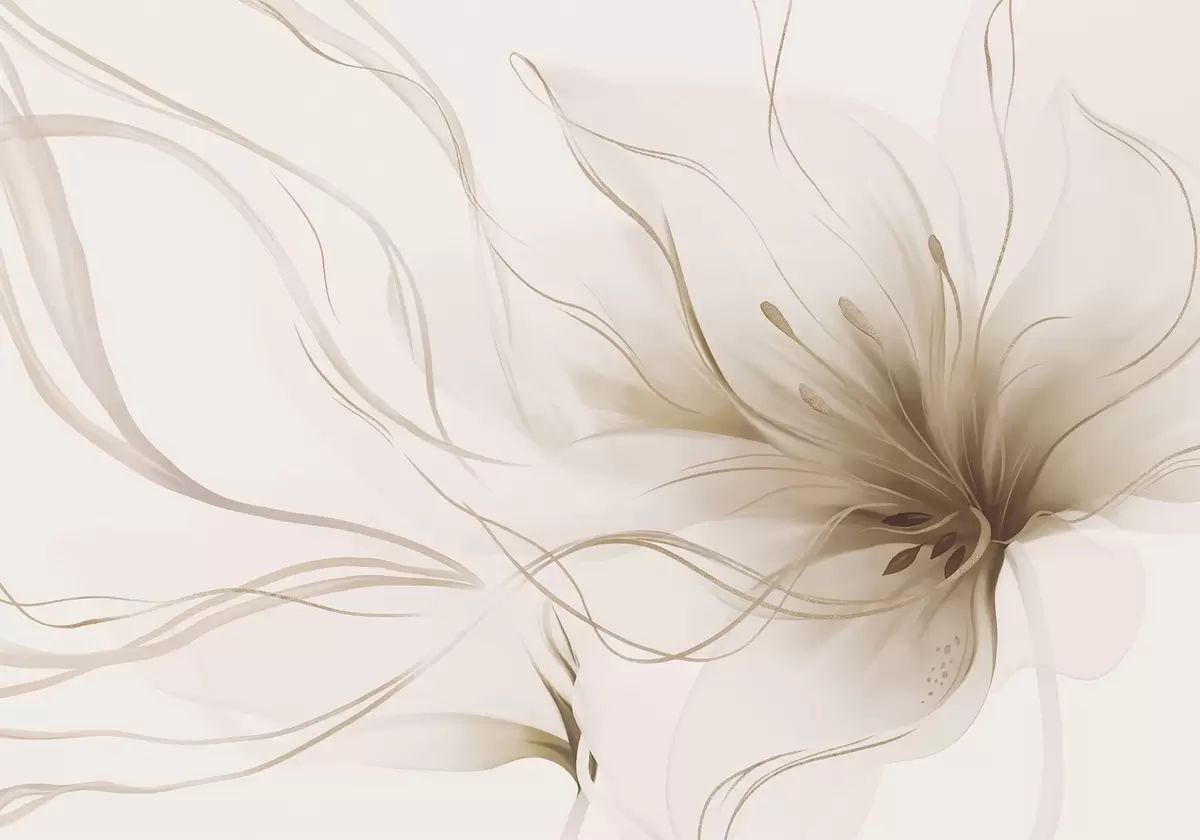 Fotobehang Een abstracte beige bloem met vloeiende lijnen in de Fluid Art-stijl N° w05428v2