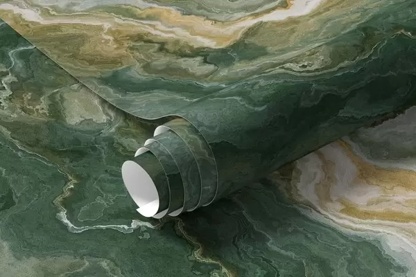 Het resultaat is dat je je behangpapier al in rollen gesneden ontvangt, netjes verpakt voor levering.