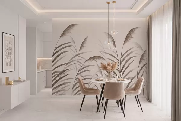 Fotobehang Minimalistische rietmotieven in beige tinten N° w05432