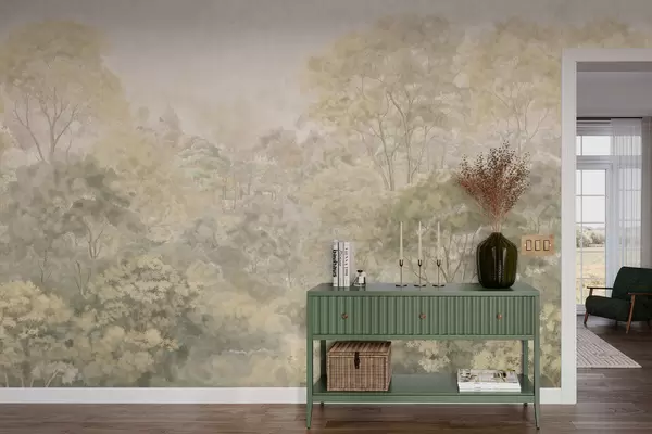 Fotobehang Vintage boslandschap in gedempte groene tinten N° w05433