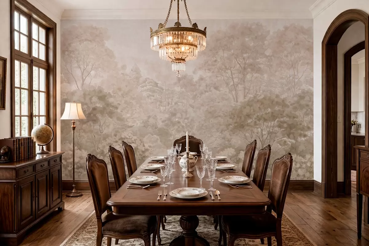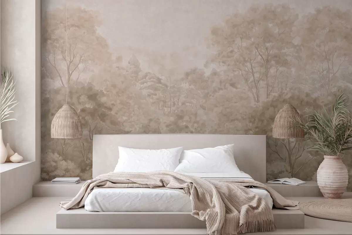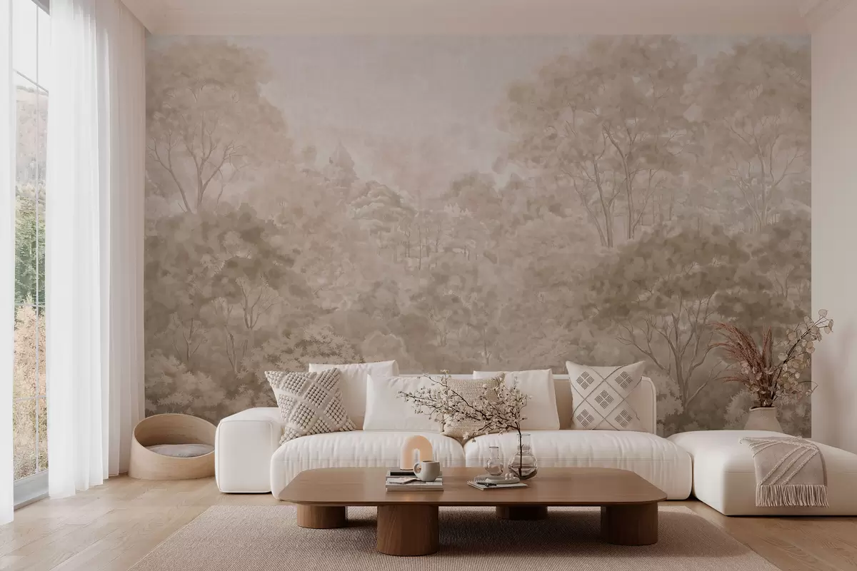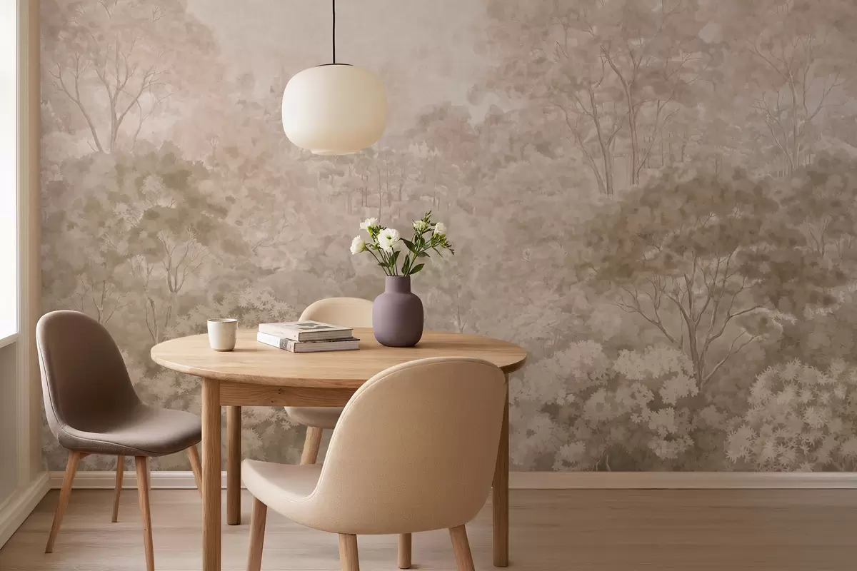 Fotobehang Vintage boslandschap in warme beige tinten N° w05433v1