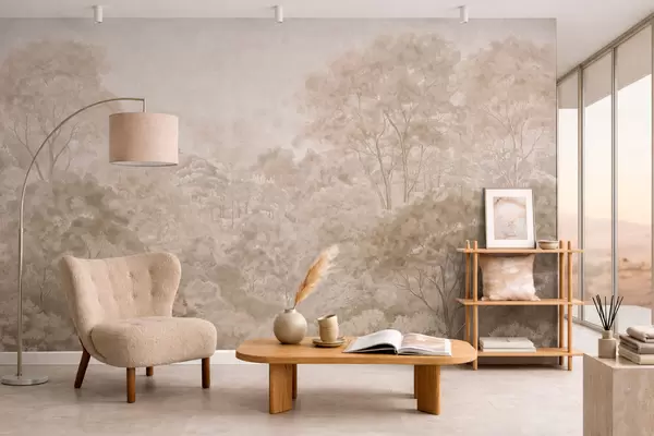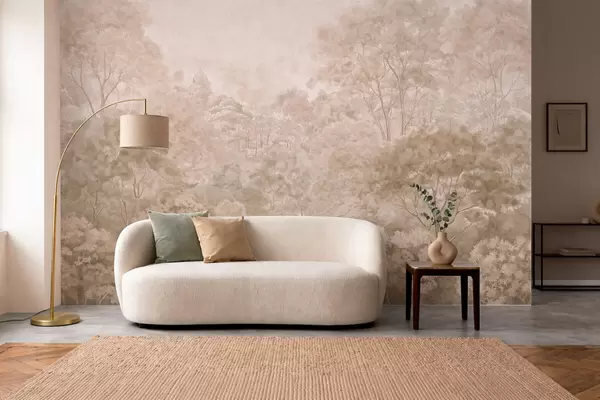 Fotobehang Vintage boslandschap in warme beige tinten N° w05433v1