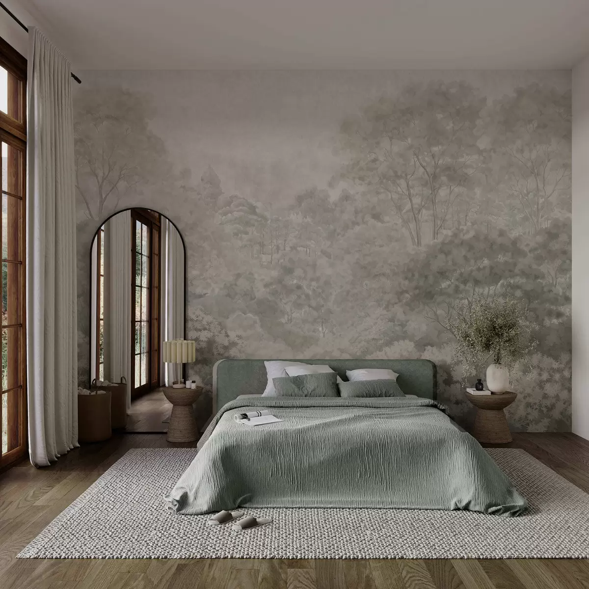 Fotobehang Vintage landschap met een licht bos in pasteltinten N° w05433v2