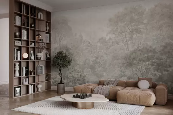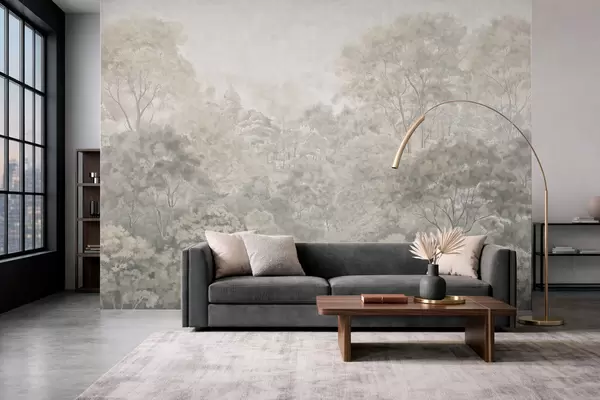 Fotobehang Vintage landschap met een licht bos in pasteltinten N° w05433v2