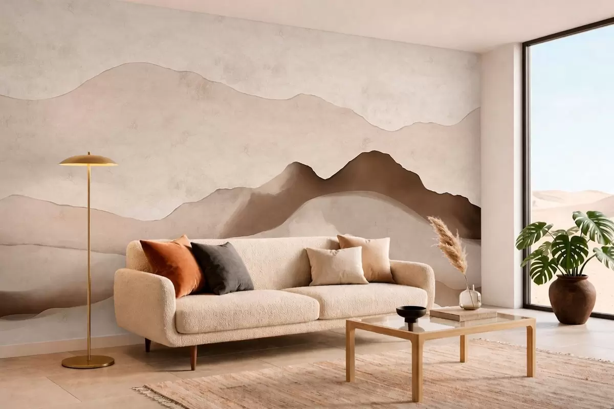 Fotobehang Abstracte bergen in de Japandi- en minimalistische stijl N° w05434