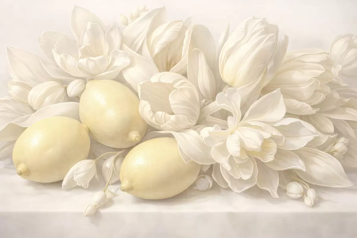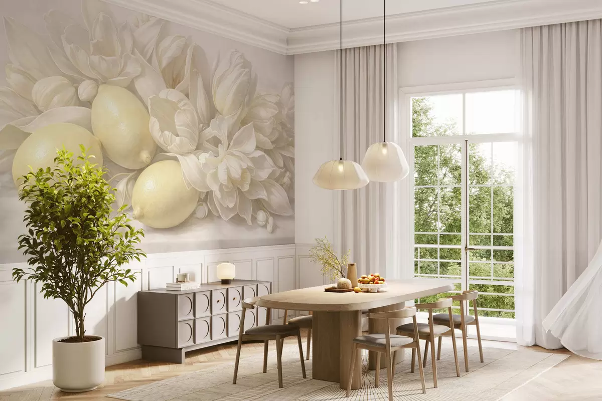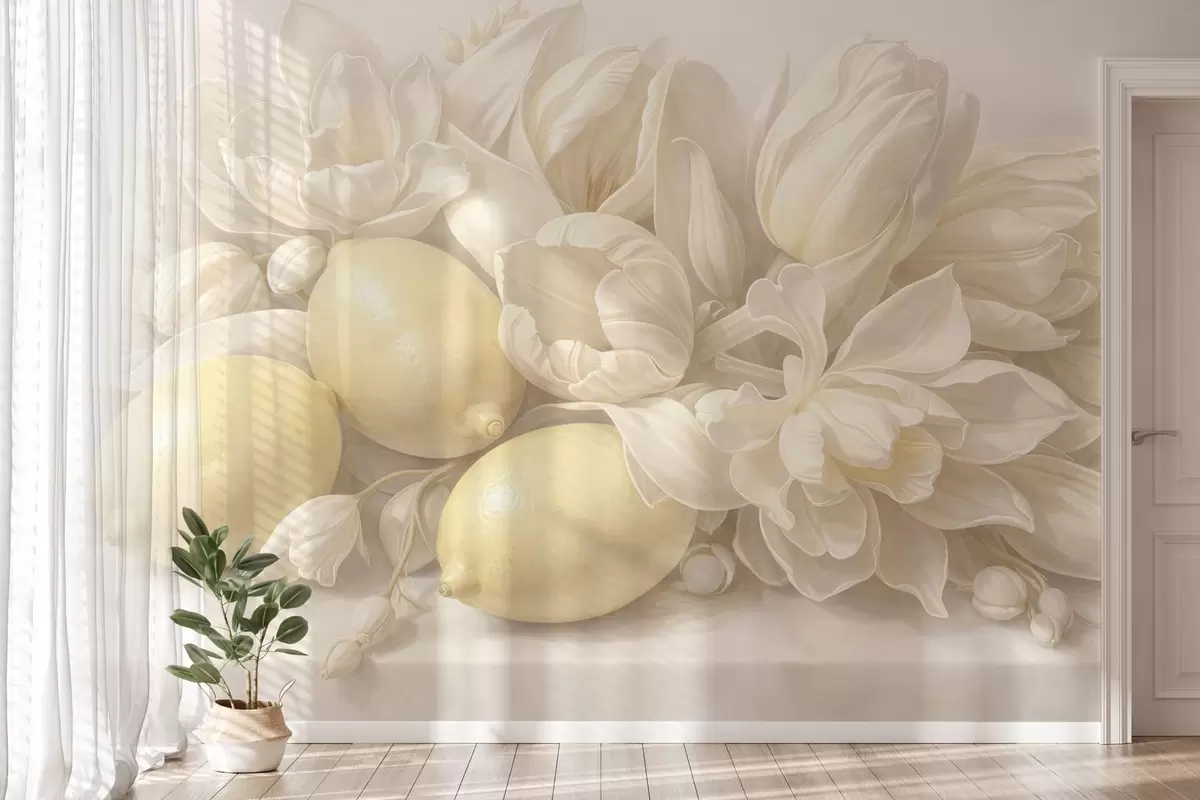 Fotobehang Een subtiel bloemenboeket met citroenen N° w05449