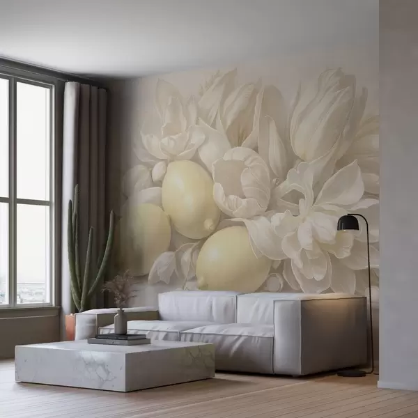 Fotobehang Een subtiel bloemenboeket met citroenen N° w05449