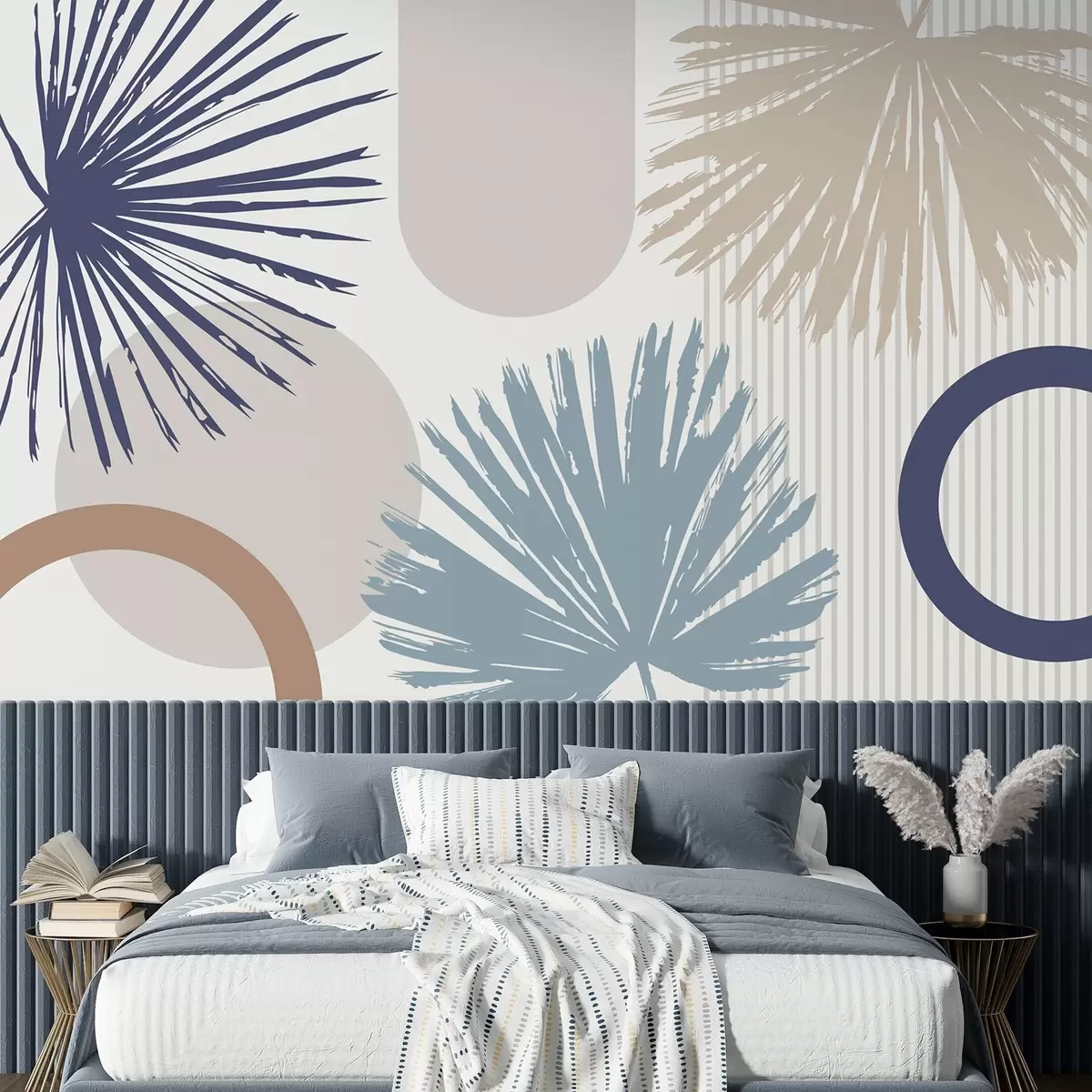 Fotobehang Abstracte compositie met planten- en geometrische silhouetten N° w05505v1