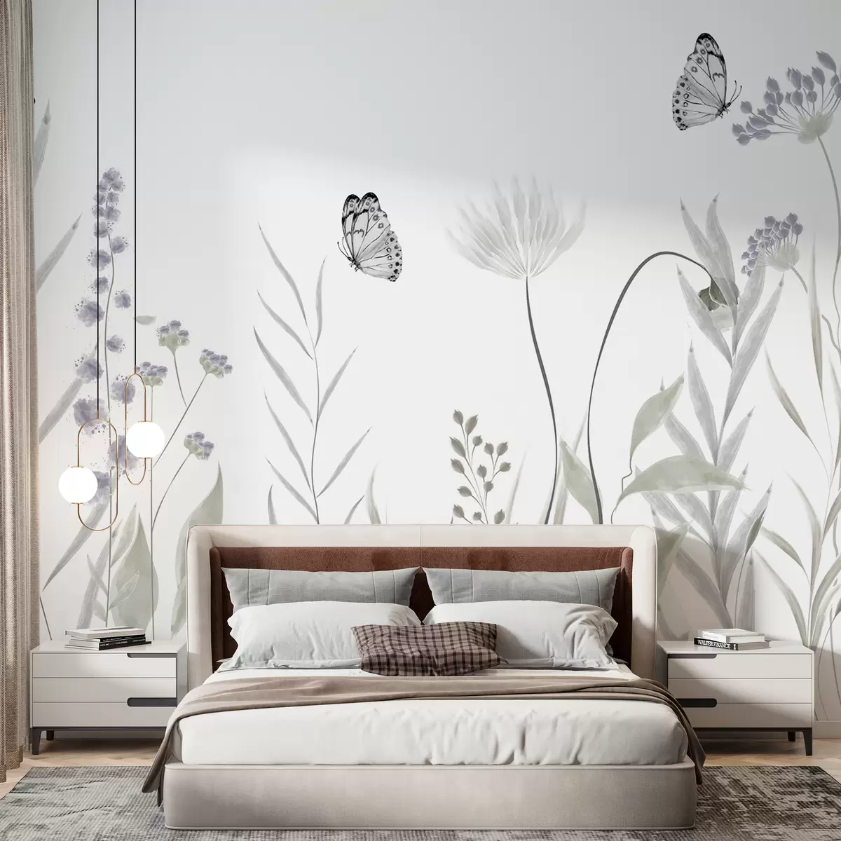 Fotobehang Wilde bloemen en vlinders N° w08052