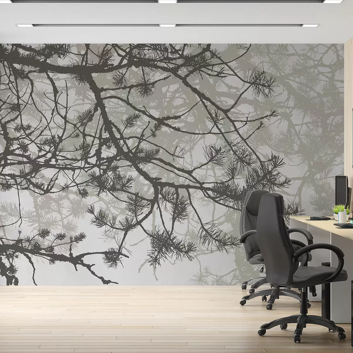 Fotobehang takken van een grote boom in grijstinten N° w08166