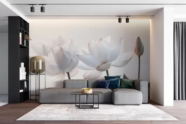 Fotobehang Zachte lotusbloemen met bloemblaadjes en bladeren N° w08488