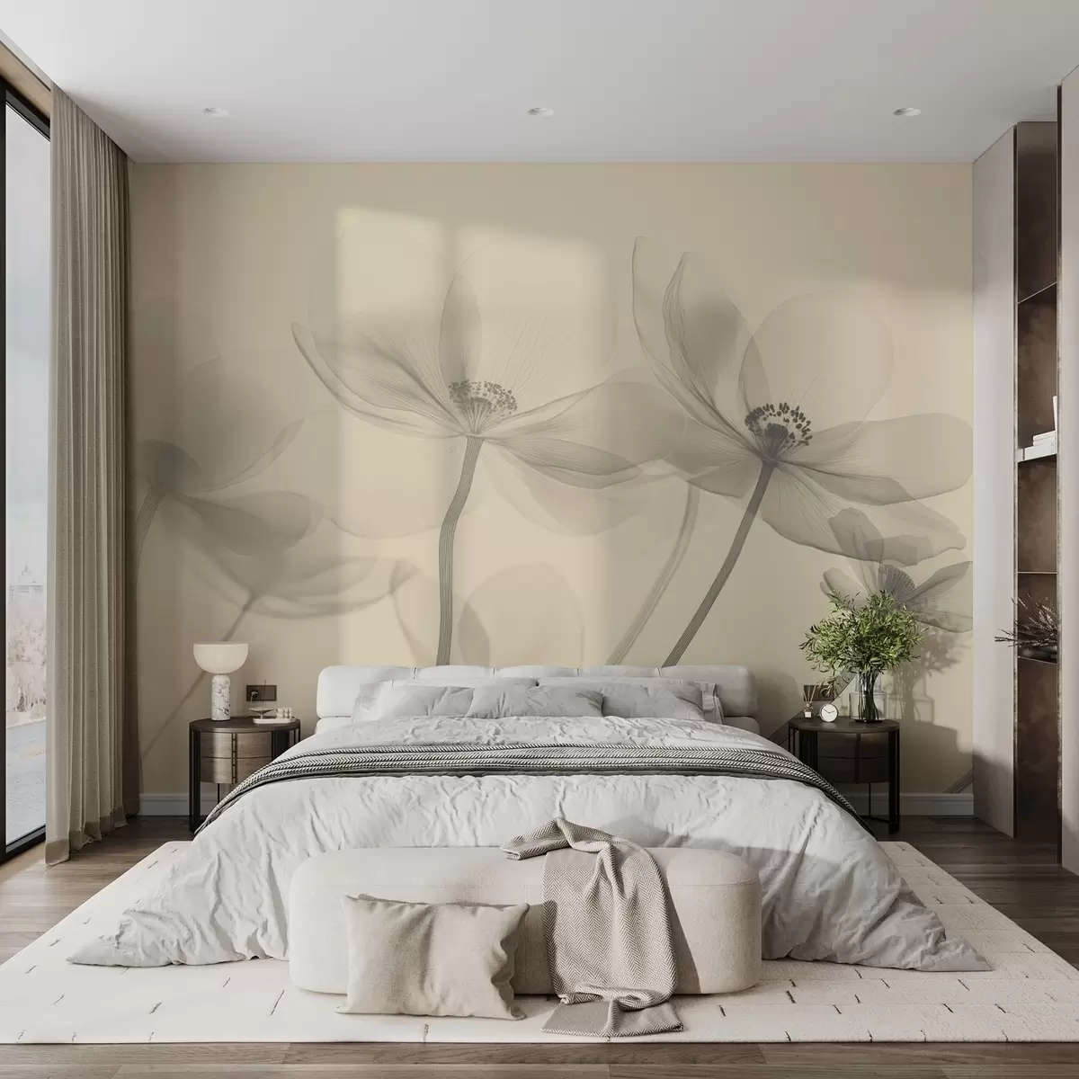 Fotobehang Luchtige wilde bloemen in een beige tint N° w08490