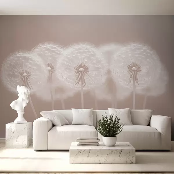 Fotobehang Delicate roze luchtige paardenbloemen op een roze natuurlijke achtergrond N° w08498v1