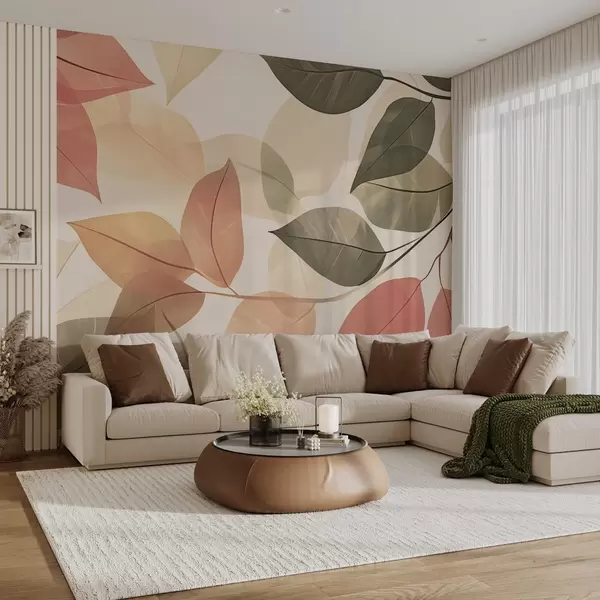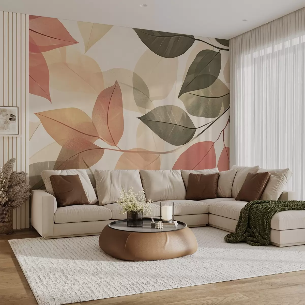Fotobehang Bladtakken in rode en groene tinten N° w08502