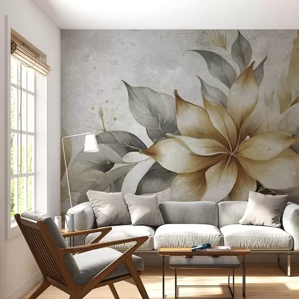 Fotobehang Tak bloemen op een imitatie betonnen achtergrond N° w08623