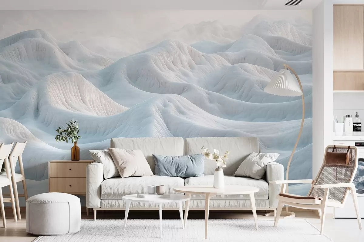Fotobehang Blauw landschap met glooiende heuvels en duinen N° w08693