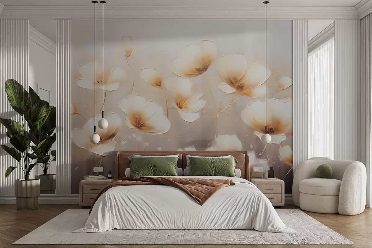 Fotobehang Elegante bloemen met delicate, zachte bloemblaadjes in warme tinten N° w08746